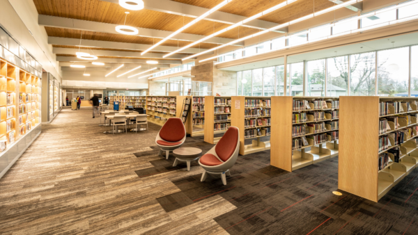 Built to take advantage of natural light, the 15,000-square foot, single story library doubles the size of the areas original building.