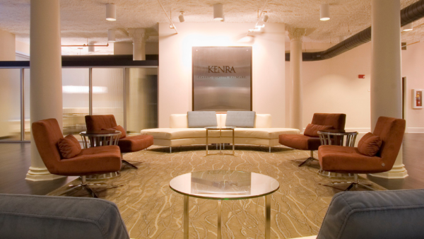 A 41,679 SF high-end, contemporary interior renovation of multiple floors in an existing building.