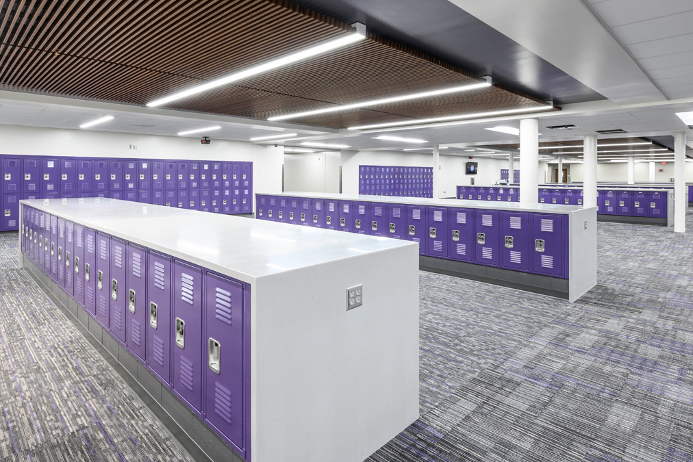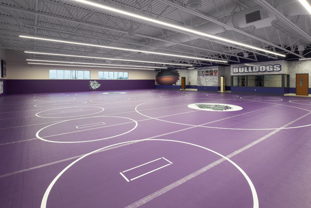 The new 10,000-square foot, state-of-the-art weight room included the addition of two locker rooms, as well as new Power Lift equipment, Plae athletic flooring, 40 yard turf dash track and re-used equipment from the old weight room. The 7,000-square foot wrestling room featured two locker rooms for home and visiting teams. Both areas include space include office space for coaching staff.