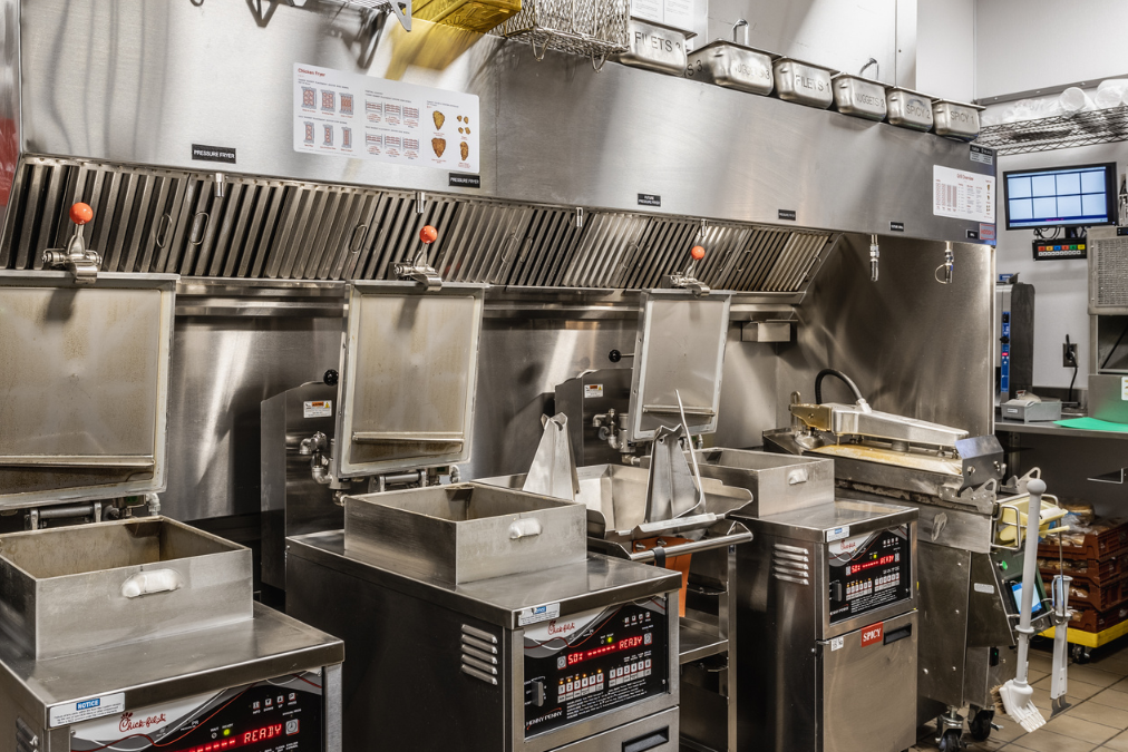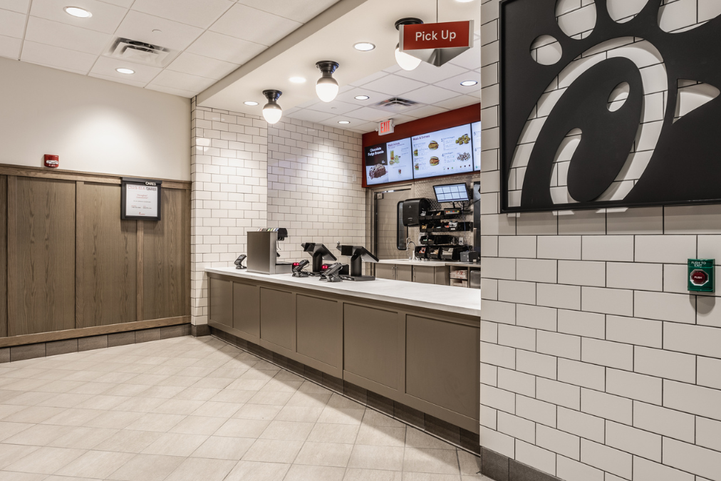 This build was delivered in just under 6 months, ready to be open for business at the start of the new semester in January 2023. Positioned as a grab-and-go dining option, this Chick-fil-A location features an expansive front ordering counter and commercial kitchen with interior accents such as decorative wainscoting, subway tile and a wood plank façade.