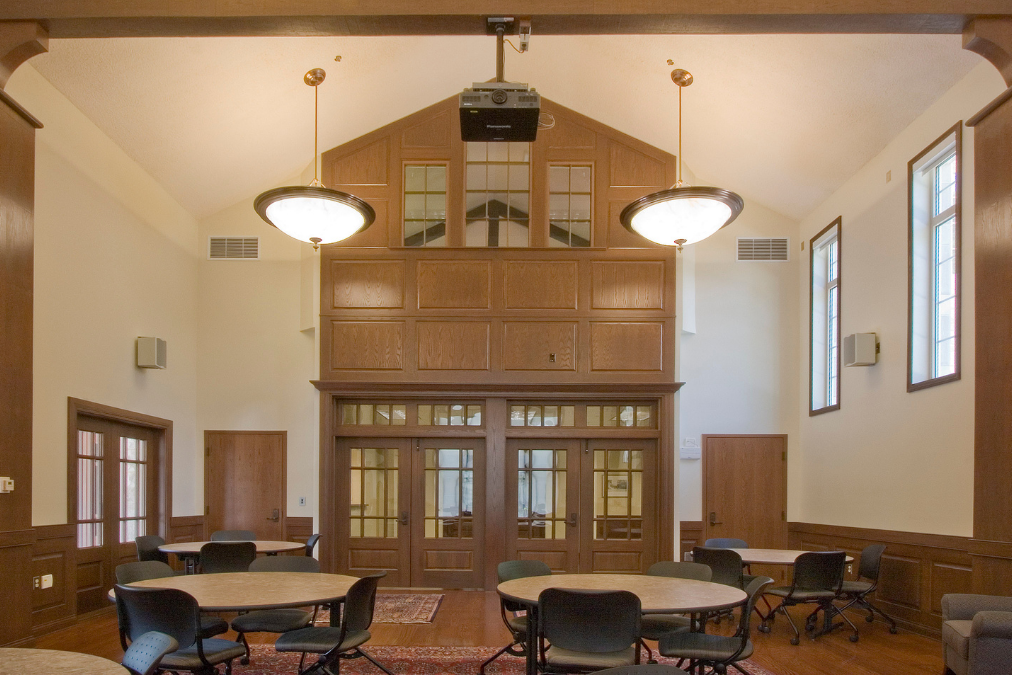 New, 12,500 SF gothic-style academic building. The two-story limestone building houses administrative offices, lounges for collaborative work-study, classrooms, advising offices, and a library for students on the Indiana University Bloomington campus.