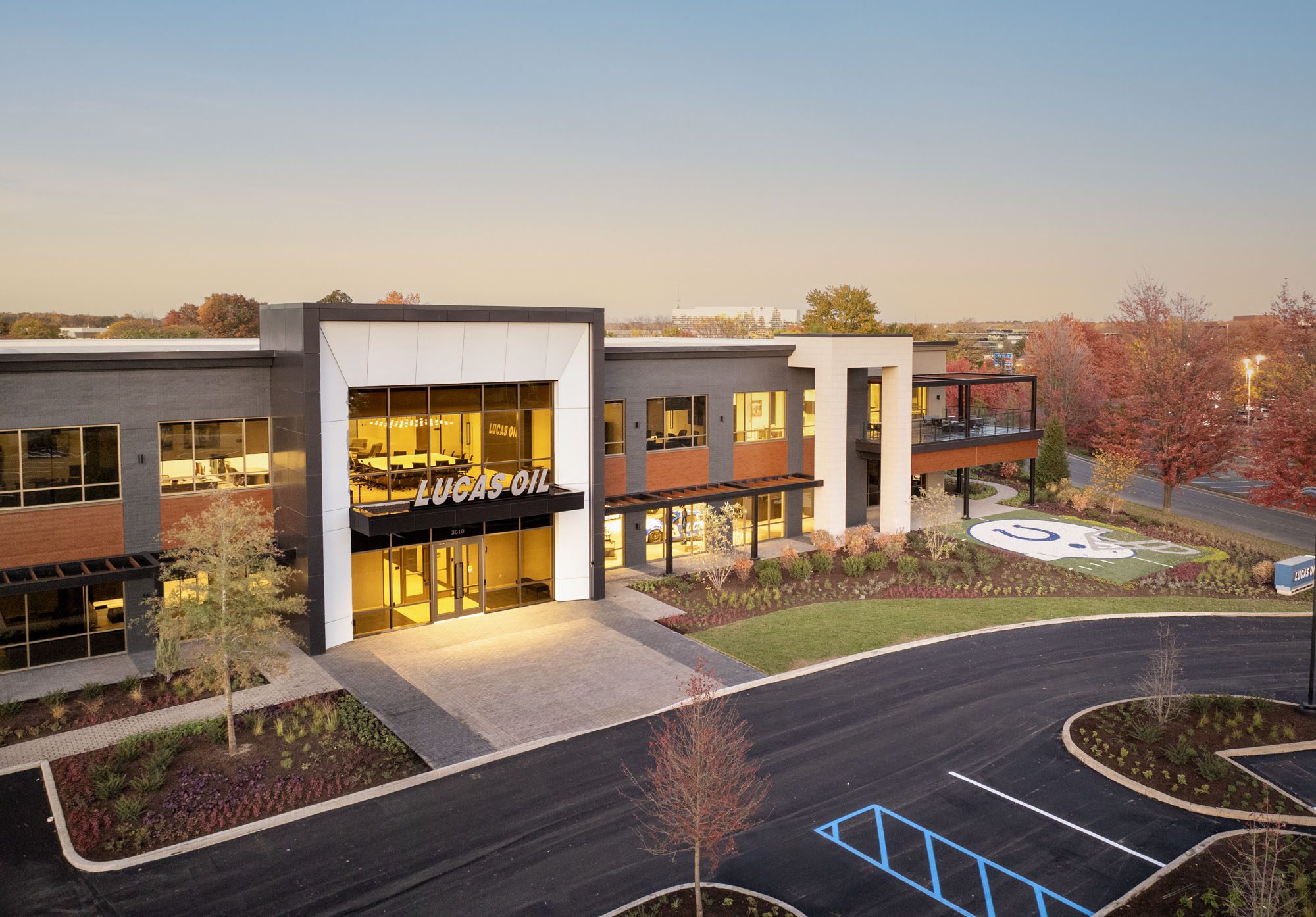 Lucas Oil’s new 70,000-square-foot, two-story global headquarters includes high-end finishes, premium employee amenities, and purpose-built spaces. Highlights of the new facility include: