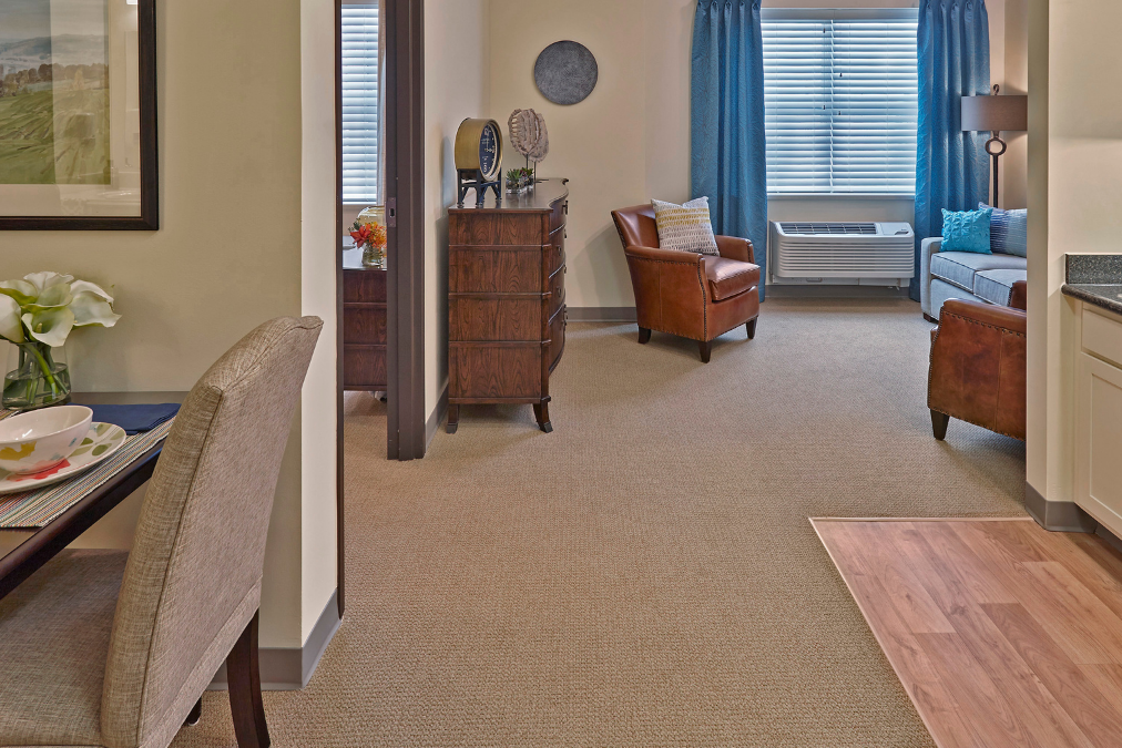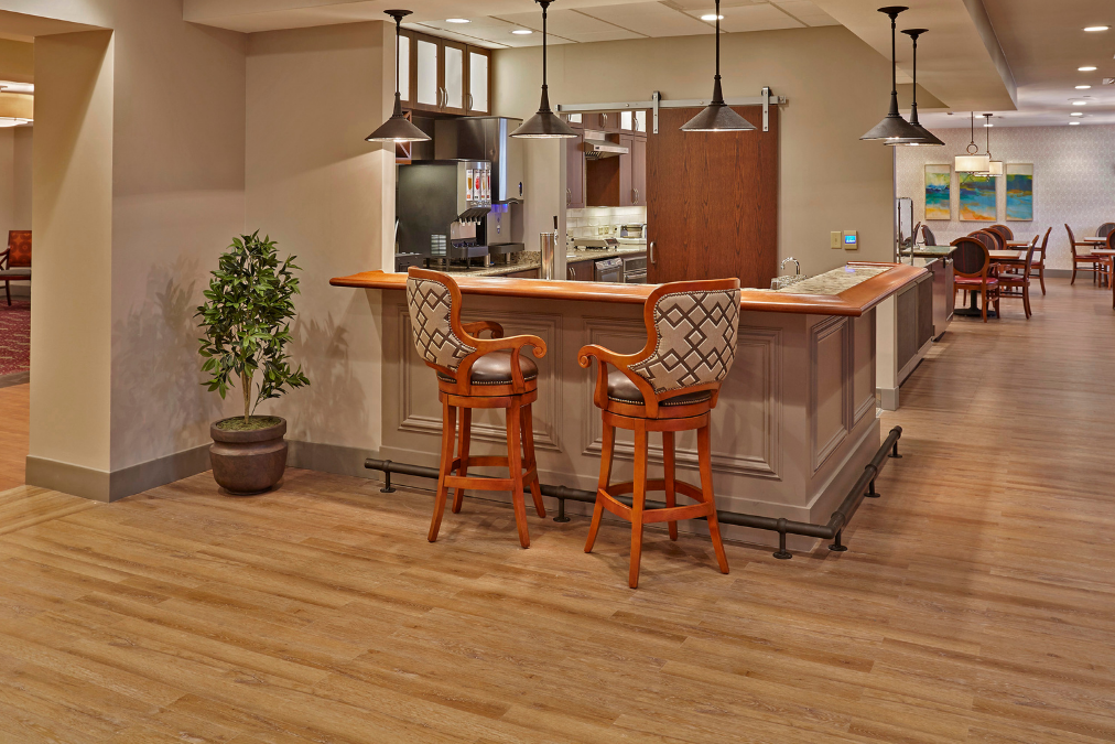 The Healthcare Resort of Olathe is a 67,817-square foot, two-story, assisted living facility. Equipped with outdoor and indoor areas for relaxing and socializing, guests can enjoy themselves throughout the property. Residents of the facility have access to an ice cream shop, hair salon, garden rooms and a theater. There is also a physical therapy room for residents to work with physical therapists on their mobility.