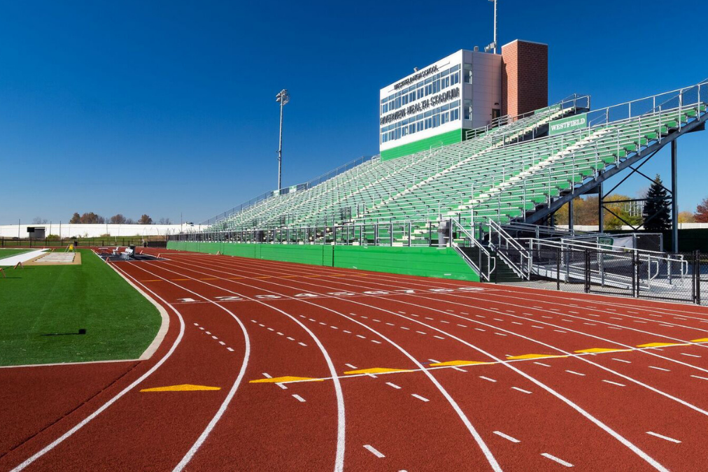 Westfield Football Stadium Westfield, Indiana New 5,900-seat football stadium with synthetic track, press box, locker room, concession stands, and restrooms. Size: 5,900 Seats Location: Westfield, Indiana